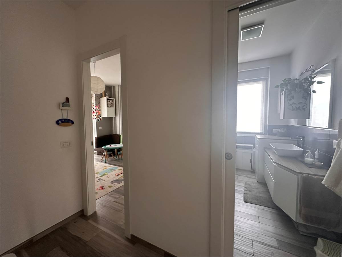 L'appartamento si sviluppa su 76 mq calpestabili con doppia esposizione ed è composto da: ingresso, soggiorno, cucina abitabile, due camere, bagno con doccia e due balconi.