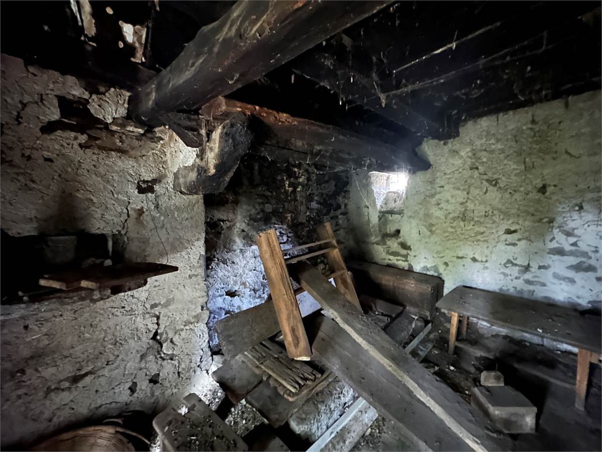 Totalmente da ristrutturare, è distribuito su 3 livelli: cantina al piano seminterrato, fienile al piano terra/rialzato e locale con grandi aperture e vista sulle montagne al primo piano.